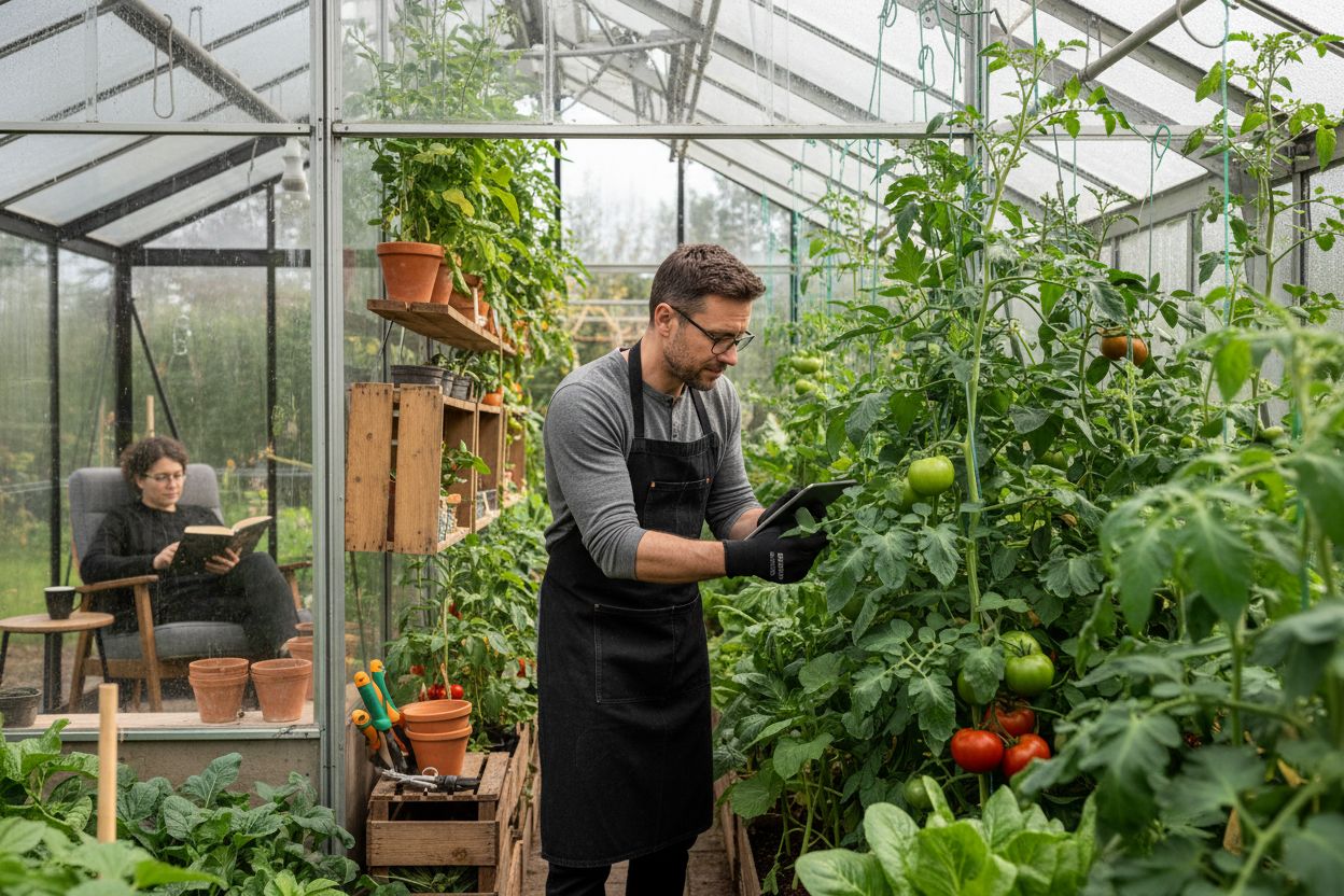La serre constitue un laboratoire de croissance où chaque élément est pensé pour optimiser le développement végétal.